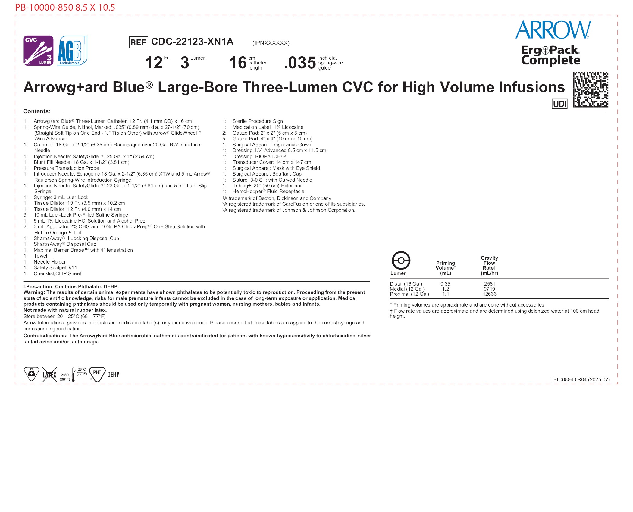 Arrowg+ard Blue® Large-Bore Three-Lumen CVC for High Volume Infusions