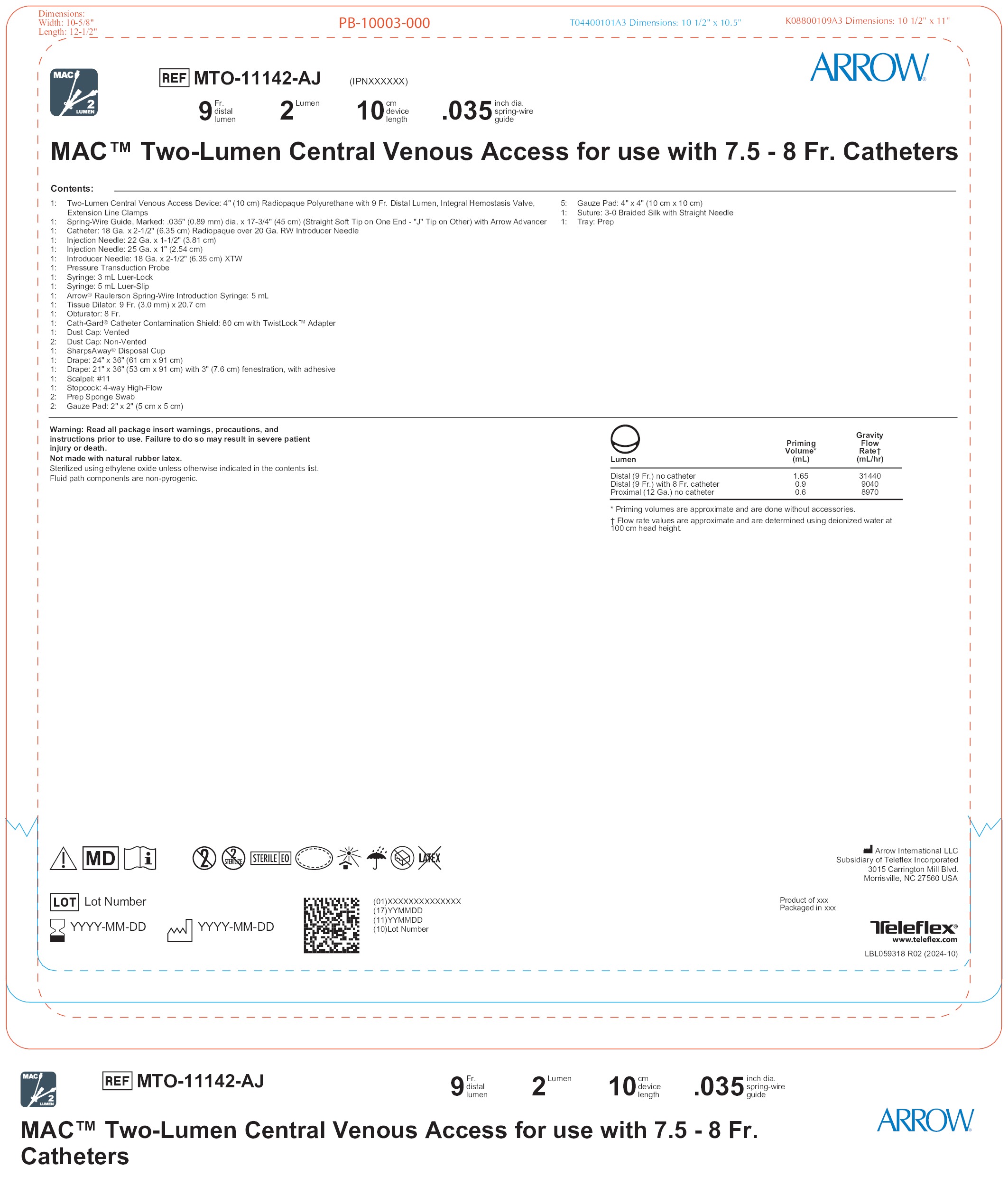 MAC™ Two-Lumen Central Venous Access for use with 7.5 - 8 Fr. Catheters